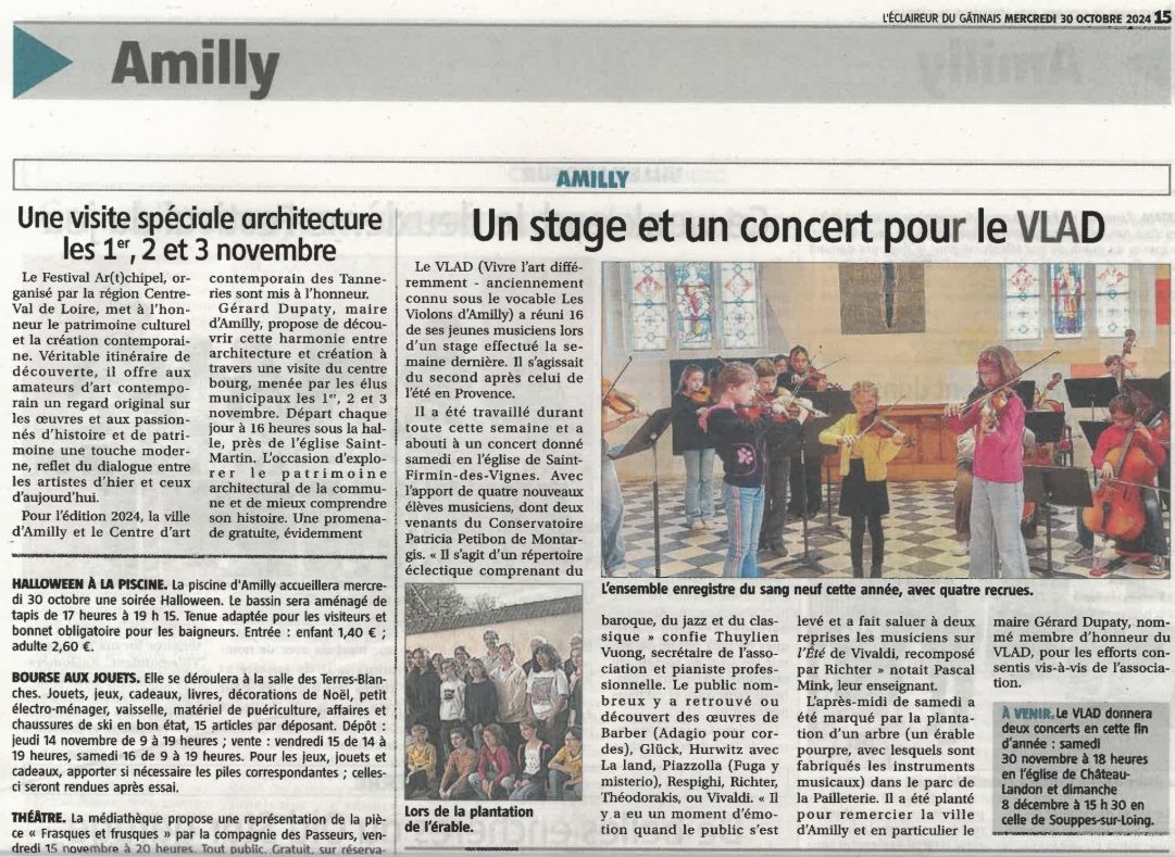 L’ensemble VLAD continue d’évoluer et prévoit de nouveaux concerts ainsi que l’enregistrement d’un CD. Cet engagement musical renforce la dynamique culturelle de la ville d’Amilly.